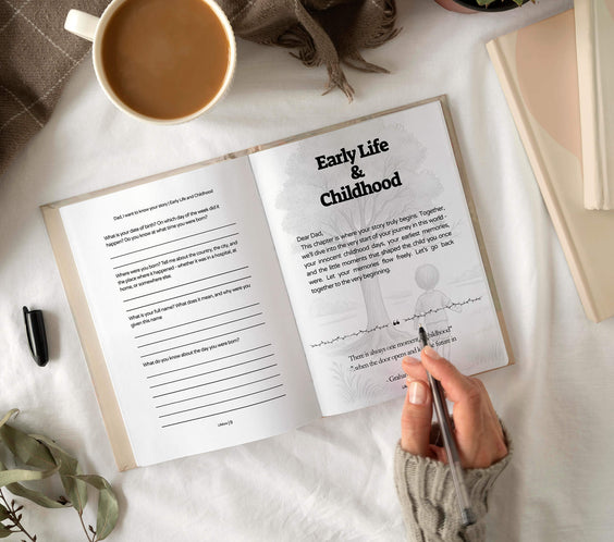 With guided prompts covering childhood, love, marriage, parenthood, career, and dreams, it creates a complete picture of their life.
