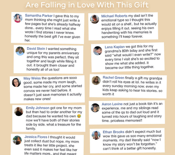 "Honestly, my grandma was hesitant at first, but once she saw the questions she couldn’t stop writing. Now she calls me to read me little parts of what she wrote. It’s the most meaningful gift I’ve ever given."